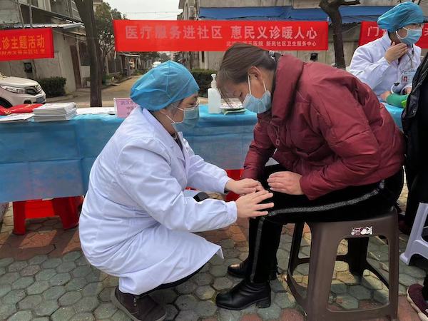新民社区78岁的余奶奶,患有多年的慢性基础性疾病、高血压和糖尿病,平时家中只有自己一个人居住。五医院心内科医生晏小妮听说余奶奶的情况,立刻来到她家,询问余奶奶的身体状况,并给出了专业的用药指导建议。“多亏了你,让我在家就可以看病。”余奶奶感动不已,连连向晏小妮道谢。