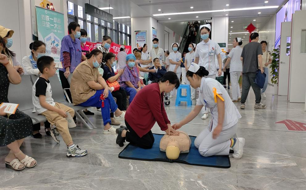 为生动展现预防跌倒智慧,消化内科护理专家现场演绎“起床三部曲”,直观规避跌倒风险;急诊与重症室专家则示范心肺复苏与海姆立克急救法,为应对跌倒紧急情况筑牢安全防线;中医科专家则献上“八段锦”养生操,融健身与减压于一体,助力提升防跌能力,展现全方位防护策略。