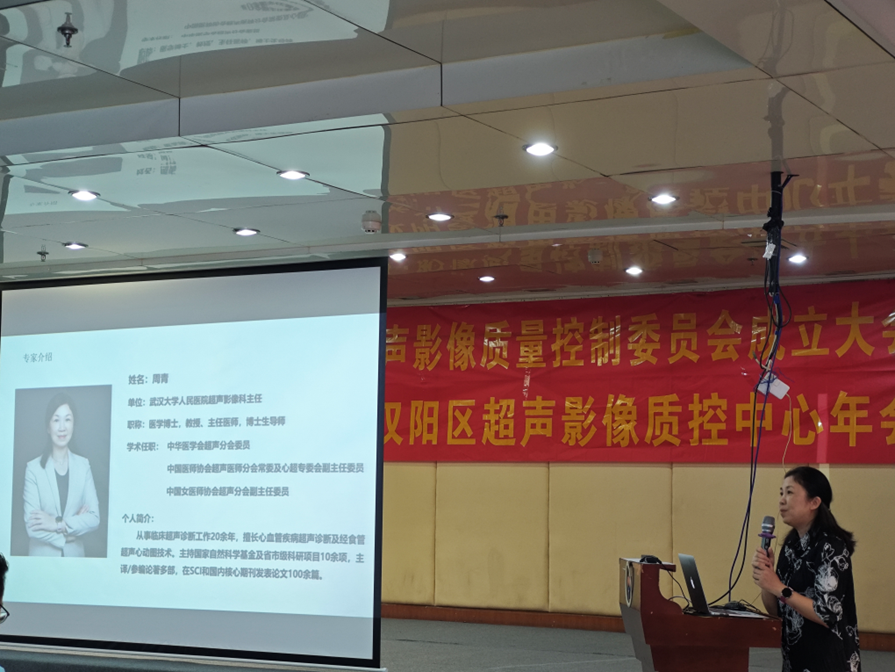 随后,湖北省超声影像质控中心主任周青教授登台致辞。周主任深刻阐述了超声影像质控工作的重要性,对武汉市第五医院在超声影像质控方面的努力给予高度评价,并期待汉阳区超声影像质控委员会的成立能够进一步推动区域质控工作的标准化、规范化进程。