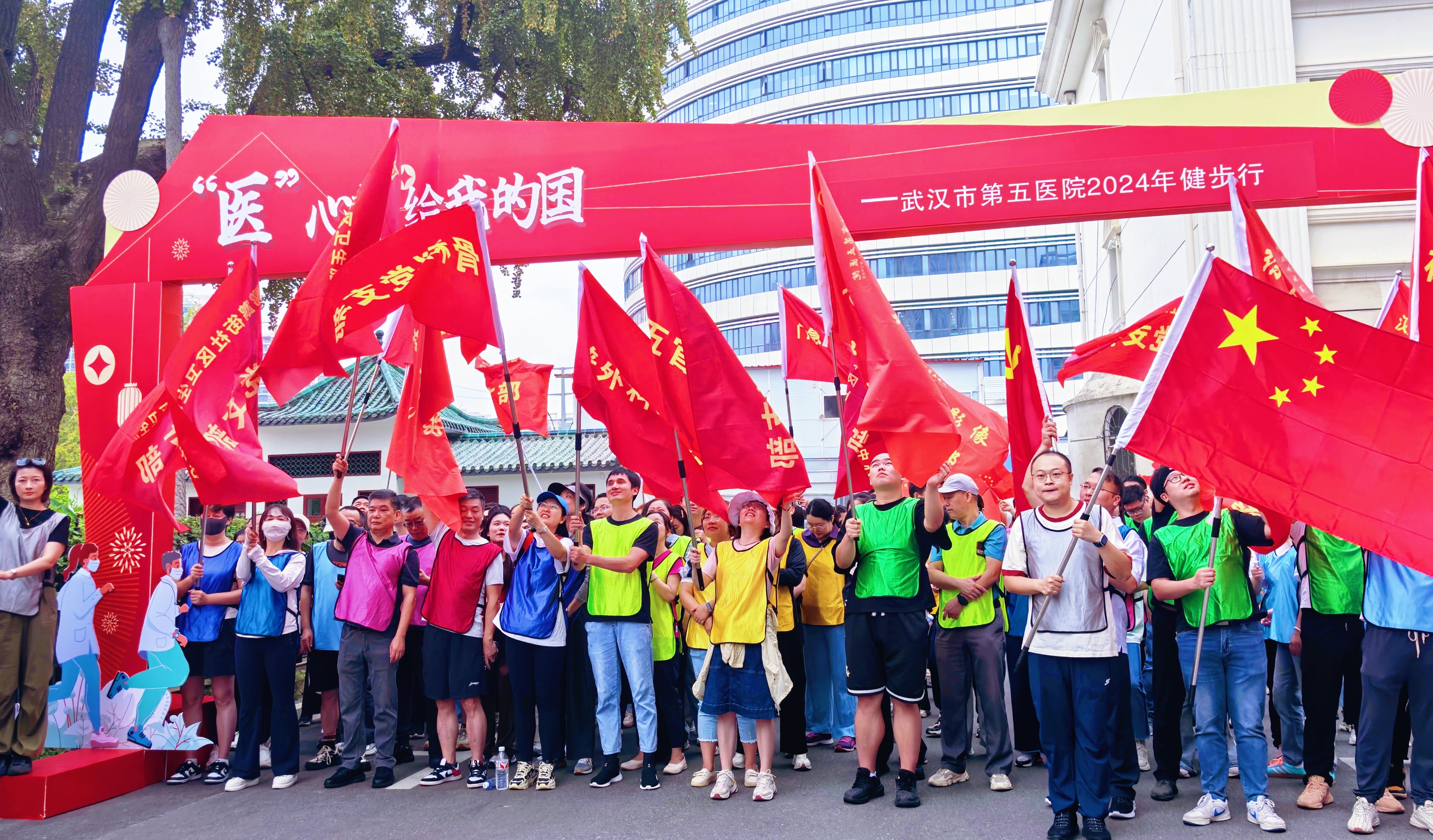为热烈庆祝中华人民共和国成立75周年,深入学习贯彻党的二十届三中全会精神,激发全员爱国热情,倡导健康生活方式。9月26日上午,武汉市第五医院党委办公室组织开展“医”心献给我的国——武汉市第五医院2024年健步行活动。本次互动不仅展现了医院医疗团队团结奋进、积极向上的精神风貌,更深刻诠释了“健康工作,快乐生活”的核心理念,为这一历史性的庆典增添了温馨而有力的注脚。