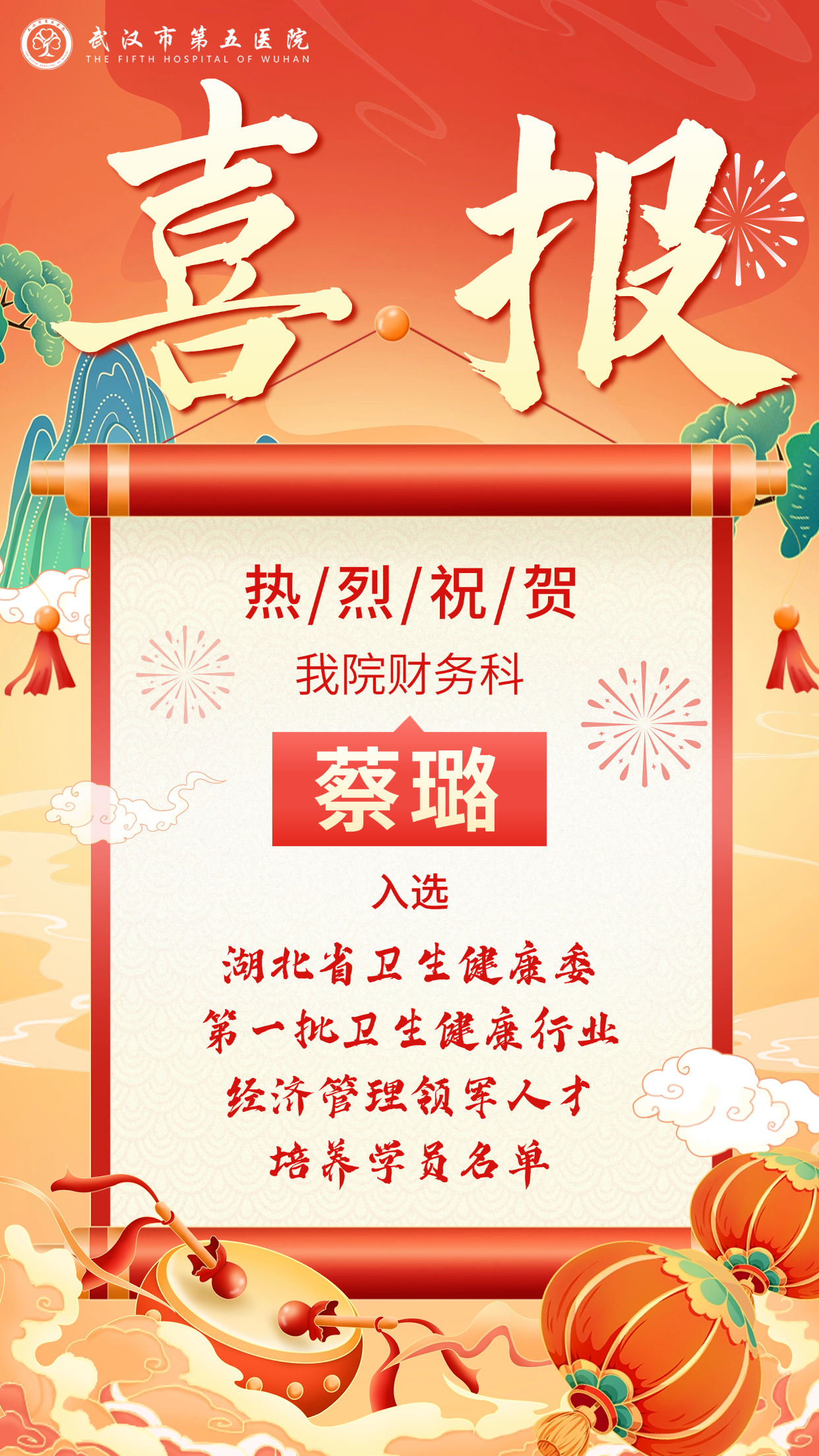 9月28日,国家卫生健康委发布第六批卫生健康行业经济管理领军人才培养学员名单,我院财务科蔡璐同志成功入选。标志着医院在卫生经济管理领域人才建设方面再次取得重要进展。