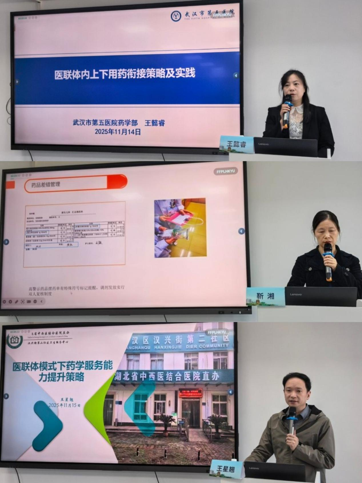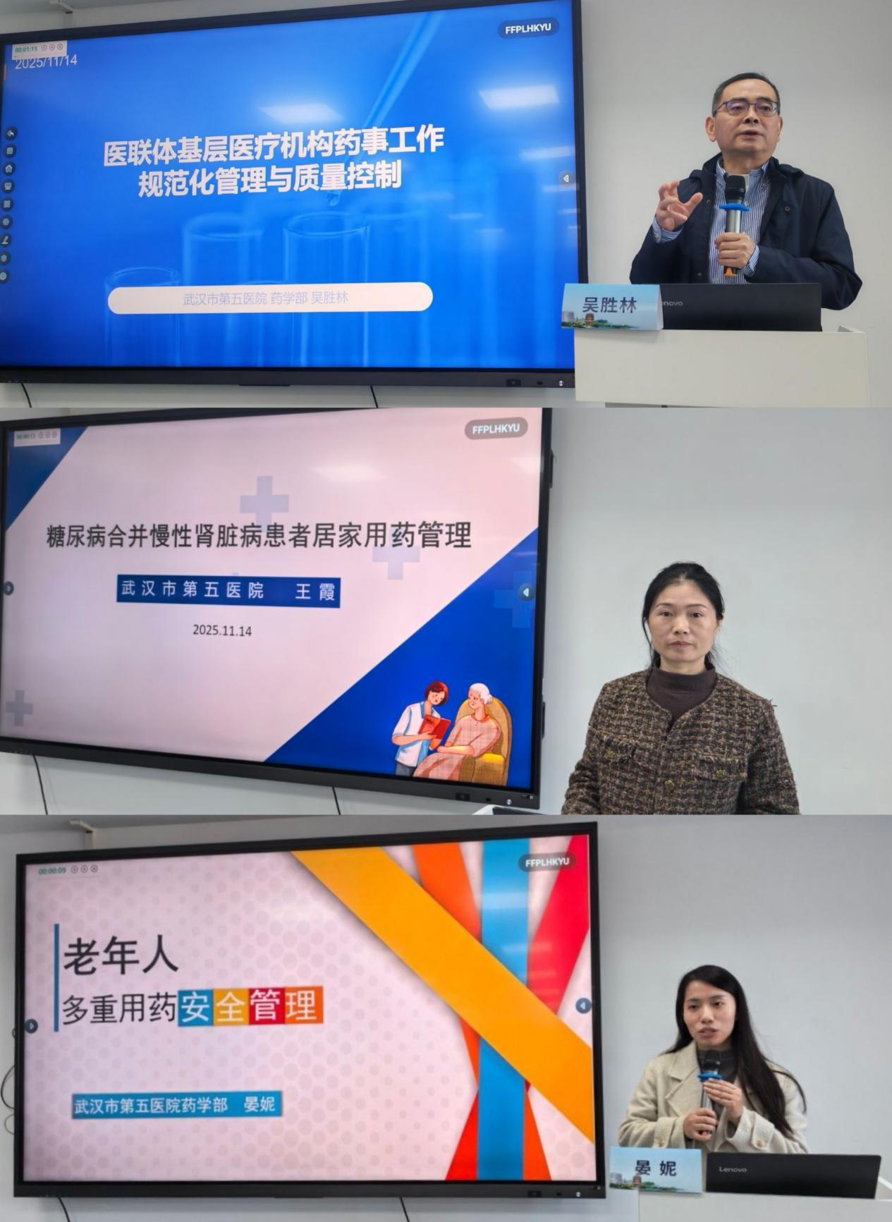 同期举办的“医联体内同质化药事管理及药学服务能力提升班”,以“深化医联体建设,促进药学服务下沉”为目标。吴胜林主任药师解读政策,为基层药事管理提供标准化指引。王霞副主任药师以特殊人群为例,详解居家药学服务风险防控;晏妮副主任药师针对老年患者提出个体化用药管理原则。王懿睿副主任药师聚焦上下用药衔接,提出创新路径。靳湘副主任药师梳理药品全生命周期管理体系,王星翘副主任药师分享湖北省中西医结合医院药学服务提升实践。培训内容全面系统,为医联体药学服务同质化发展提供解决方案。