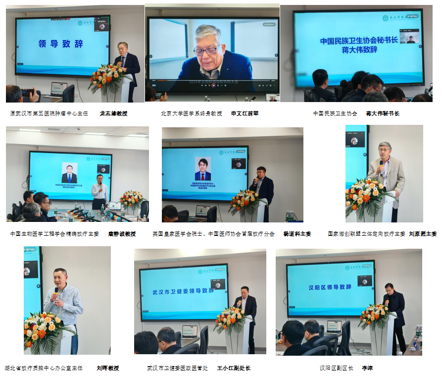 国家卫健委医药科技发展中心肿瘤放射外科专家组组长、吴阶平医学基金会放疗专委会主委、武汉市肿瘤放射治疗医疗质量控制中心前任主任委员龙志雄教授等众多放疗专业学术大咖依次致欢迎词。其中,北京大学医学系终身教授申文江前辈作为放疗界泰斗级人物,在线上为大会致辞。他对大会筹备工作给予高度肯定,对武汉市肿瘤放射治疗医疗质量控制中心未来在放射治疗质量控制方面的工作寄予殷切期望,希望能在武汉作出特色和亮点,并预祝大会圆满成功。