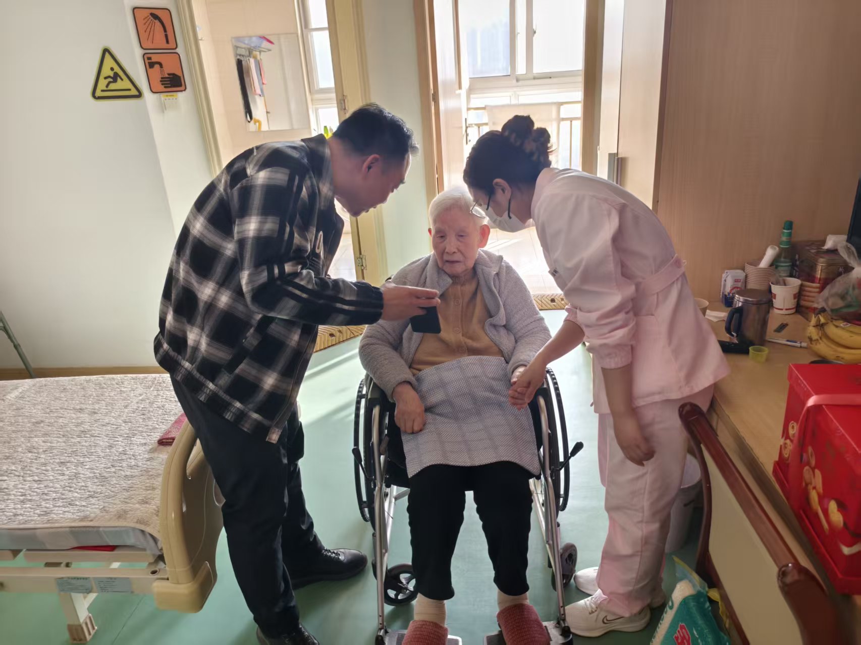 慰问组为老同志送上精心准备的节日礼品,表达深深敬意与感谢,感谢他们为医院发展奠定的坚实基础与付出的心血,并叮嘱他们注意防寒保暖、保持身心愉悦、安享幸福晚年。“医院一直记着我们,心里特别暖!”老同志们纷纷表示,将持续关注医院发展,尽己所能发挥余热。