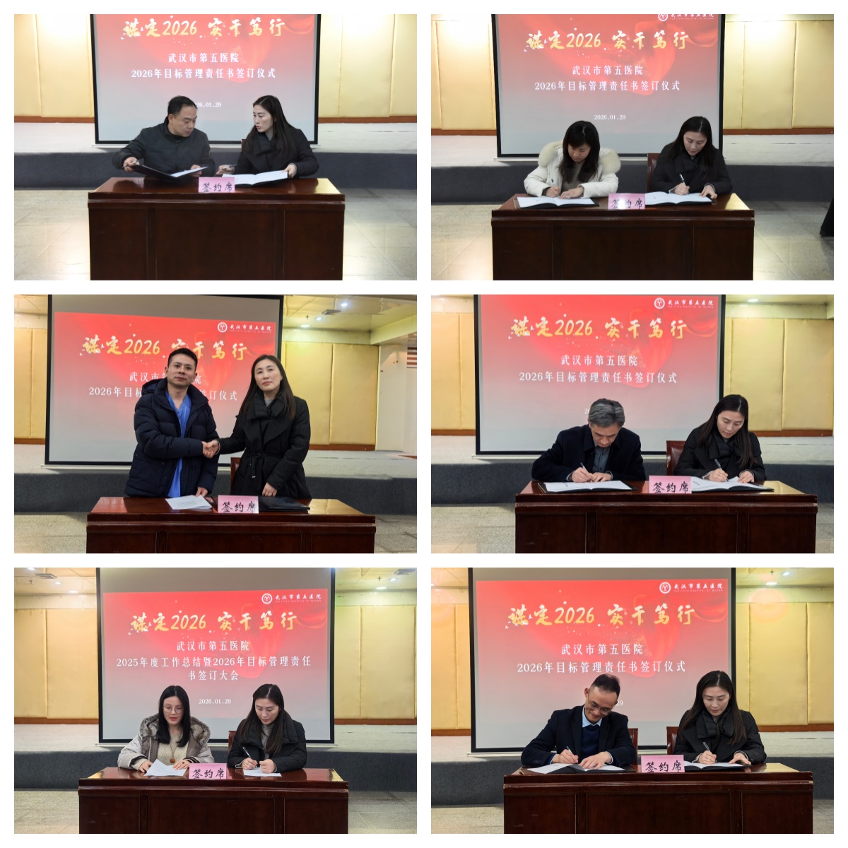 时光镌刻奋斗足迹,岁月见证发展华章。1月29日,武汉市第五医院2025年度工作总结暨2026年目标管理责任书签订大会胜利召开。会议系统总结2025年工作,深入分析当前形势,科学部署2026年重点任务,动员全院干部职工凝心聚力、锐意进取,奋力开启“十五五”高质量发展新篇章。