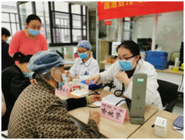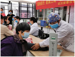 进行完各项讲解及演示后,呼吸与危重症医学科医护为社区居民进行义诊。解答大家关于疾病的疑问、提供防治意见、指导合理用药,并测量血压、血糖,并提供了10个免费行肺功能检查的名额。