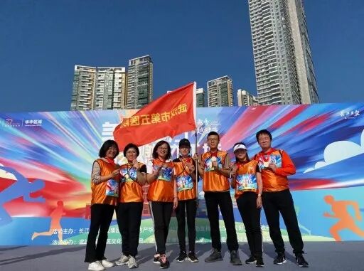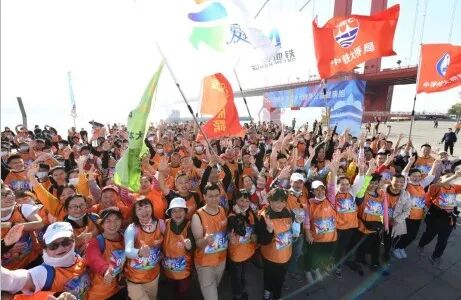 上午九时,伴随着开跑倒计时,身穿橘色统一服装的参赛者们,似一片橘色的江浪在长江边涌动,一张张兴奋的面孔下,是欢乐起跑,迎风而行的铿锵步伐。